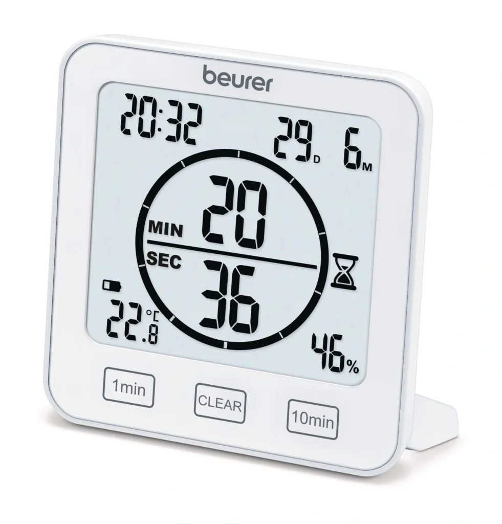 Praktický hygrometr a minutka BEURER HM22 pro přesné sledování vlhkosti a času v domácnosti.
