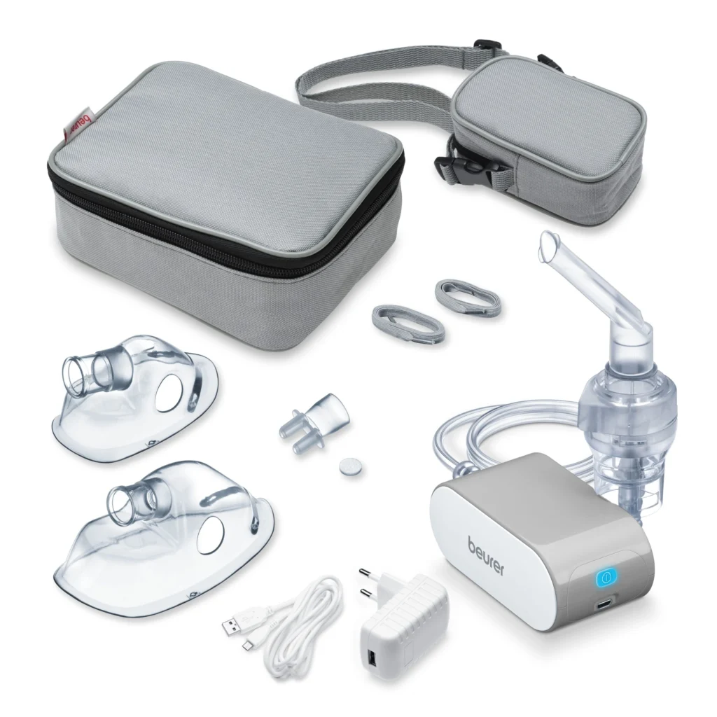 Komfortní kompresorový inhalátor Beurer IH58 je ideální společník pro léčbu dýchacích cest doma i na cestách.