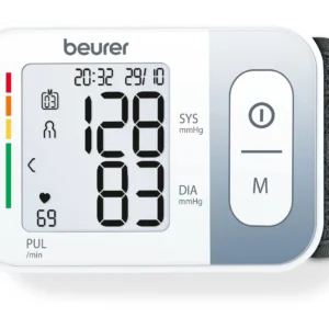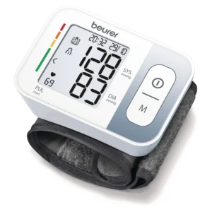 Tlakoměr na zápěstí Beurer BC28 nabízí spolehlivé měření krevního tlaku s funkcí detekce srdeční arytmie a pamětí pro uložení až 120 naměřených hodnot.